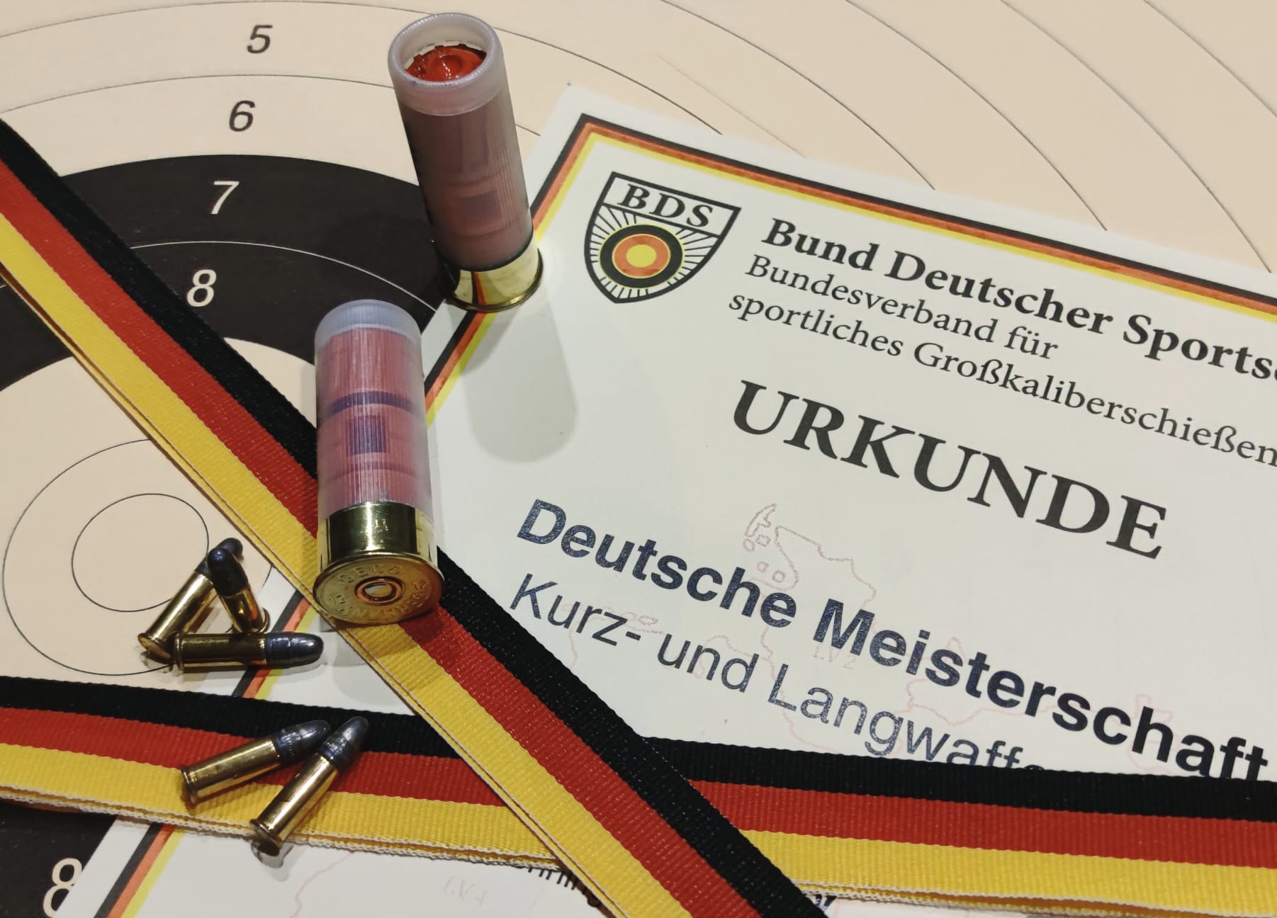 Bei der Deutschen Meisterschaft des BDS in Philippsburg für Kurz- und Langwaffen, waren unsere Mitglieder wieder einmal erfolgreich. Klaus Henning wird Deutscher Meister in der Disziplin 4501 - Mehrdistanz Flinte - Selbstladeflinte. Lisa Wiedner gewinnt den Titel in der Disziplin 2107 - 50 Meter Präszision Matchsportgewehr KK. Deutsche Vizemeister sind Klaus Henning, Sascha Henseleit-Wieser und Peter Zwarycz in der Disziplin 1112 - 25m Kombination Freie Klasse .22lr mit Optik. Wir gratulieren zu diesen tollen Erfolgen und allen Startern die es bis zur DM geschaft haben.